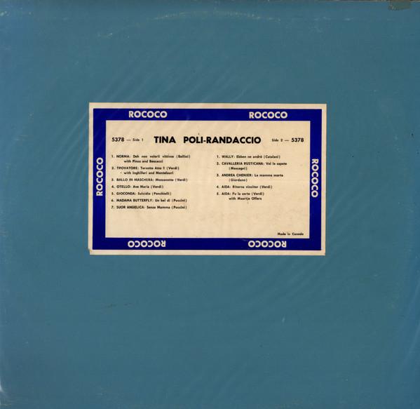 ・アーティストTina Poli-Randaccio・タイトルTina Poli-Randaccio・レーベル・型番Rococo Records 5378・フォーマットLPレコード・コンディション(盤)良い (VG+)・コンディション(ジャケット)良い (VG+)・コンディション(帯)オビなし・特記事項