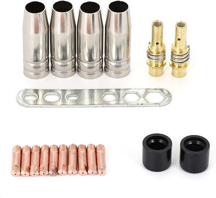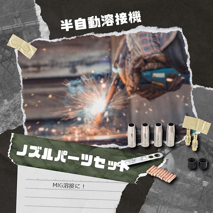 半自動溶接機の消耗品アクセサリー、パーツ、ノズル、 チップ、 ボディ 、カラー 、レンチ 19点セットになります。