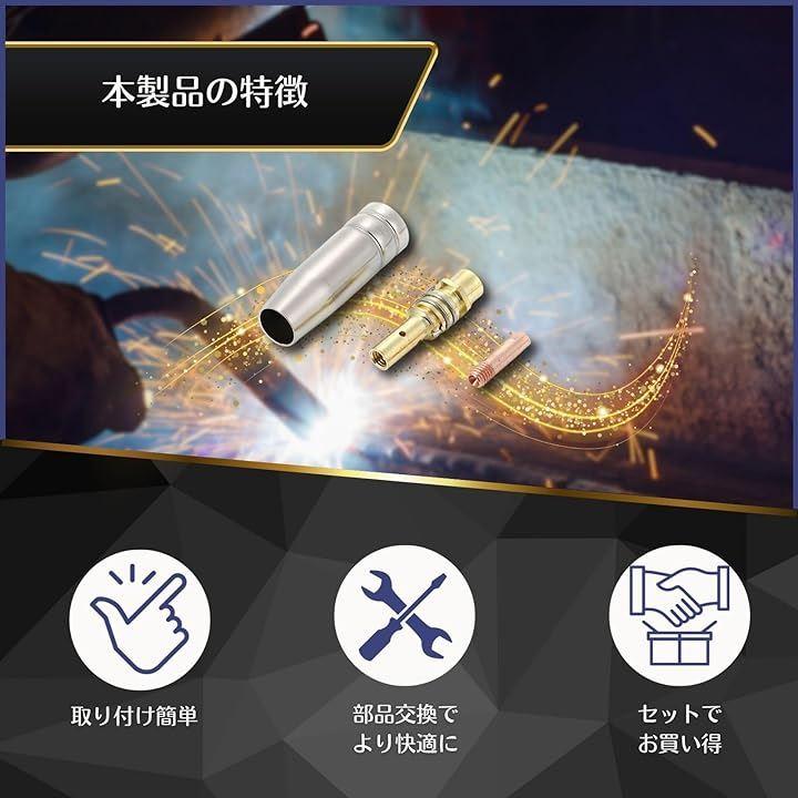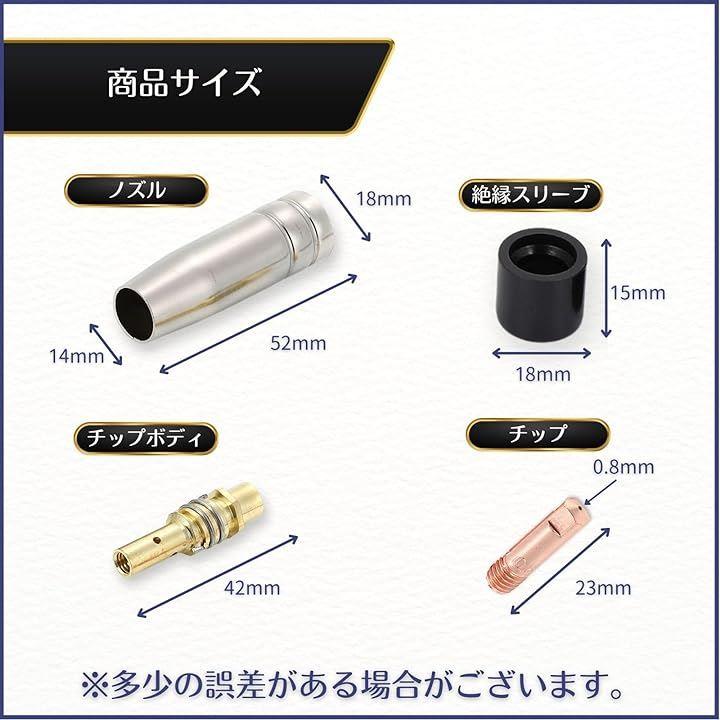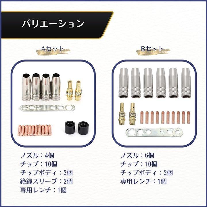 半自動溶接機用消耗品19点セット:ノズル4個:チップ0.8mm 10個:ボディ2個:カラー2個:専用レンチ1個:MIG100、MIG130、MIG160アーキュリー等の半自動溶接機用