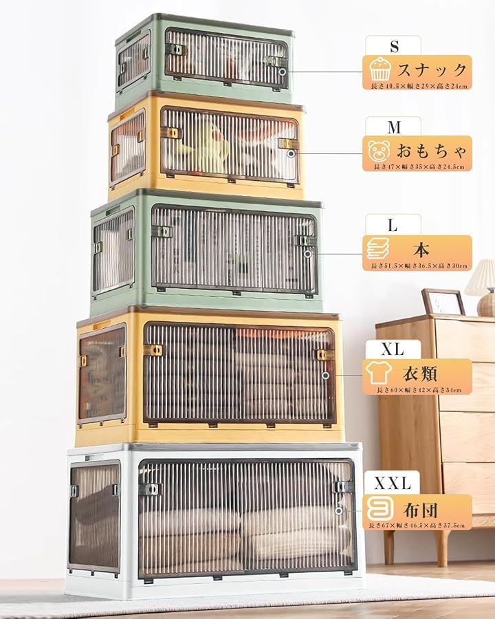 「5面開閉式x大容量収納」 「衣類/おもちゃ/布団収納に最適」 5面開閉式収納ボックスはどこからでも開けれるので詰める順番を考えずに、ポイポイ入れれるのが便利です。