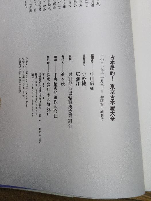 b02-251226001001015-000古本屋的! 東京古本屋大全 本の雑誌社 中山信如2020年に創立百年を迎えた東京都古書籍商業協同組合(東京古書組合)が連綿と刊行し続けてきた機関誌「古書月報」の過去50年分、300冊の中から面白い記事、役に立つ情報120本を選りすぐり、再編集した『古本屋的! 東京古本屋大全』。
