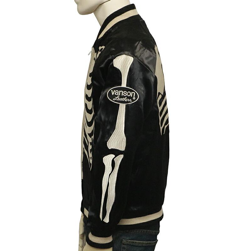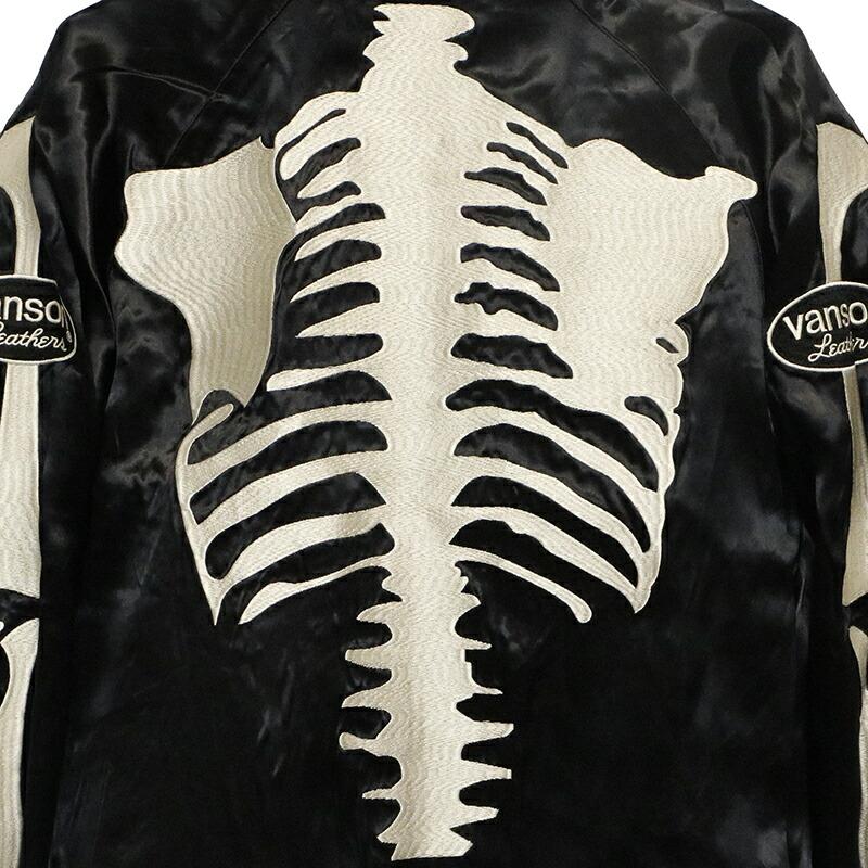 表面に和柄の人気柄であるがしゃ髑髏を刺繍で落とし込み、リバーシブル面には、VANSON定番柄であるボーン柄を刺繍で落とし込みました。