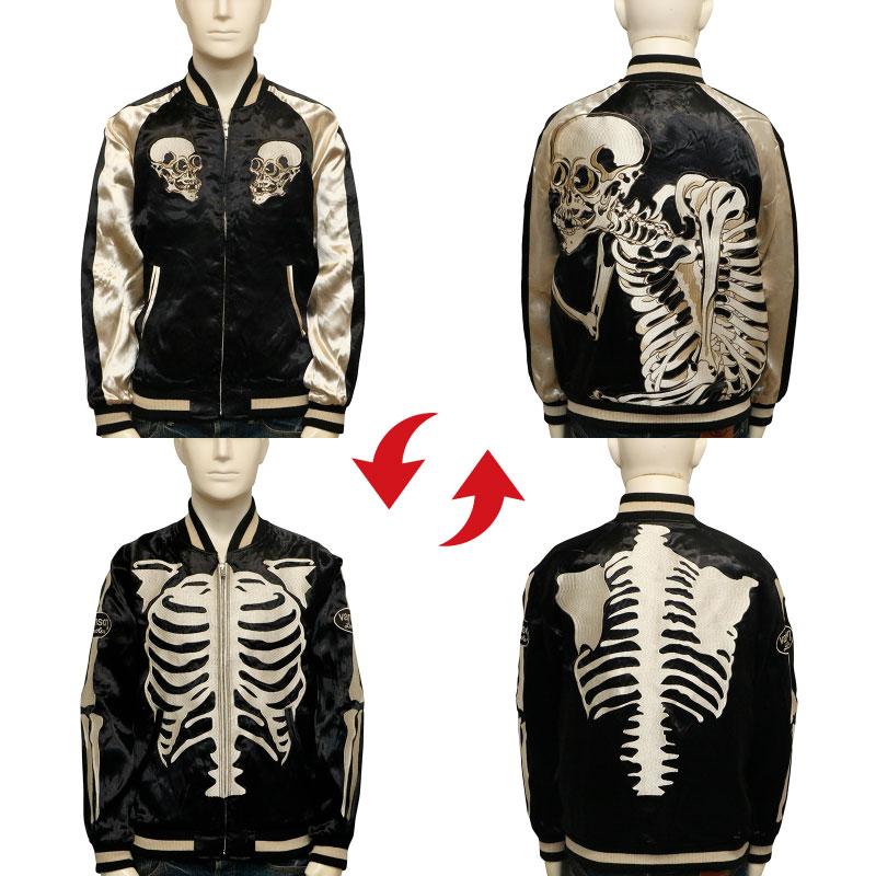がしゃ髑髏 × ボーン 柄 刺繍 リバ−シブル スカジャン