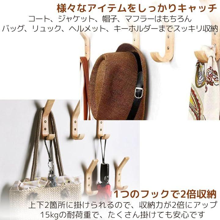 「1つのフックで2倍収納」コート、ジャケット、帽子、マフラーなど、普段使いのアイテムから、バッグ、リュック、ヘルメット、キーホルダーまで、これ一つでスッキリ収納。