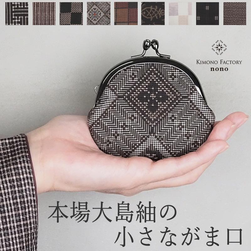 手のひらにすっぽりと収まる大島紬の小さながま口。シンプルながらも愛らしいデザインで、使うたびに気分があがるアイテムです。小銭やアクセサリーを入れて、お出かけのお供にぴったり。軽くて持ち運びやすいから、いつでもどこでも気軽に使えます。毎日の暮らしをちょっと楽しく彩る、あなたの新しいお気に入りになること間違いなし!【素材】表地:絹 裏地:綿 日本製【お手入れ方法】※ご使用や摩擦、水濡れ等によって色落ち、色褪せ、生地の擦れなどが生じます。※白や淡色には色移りする場合がございますのでお気をつけください。※ベンジン・シンナーなどのアルコール系溶剤の使用や、水で丸洗いすることはお止めください。【寸法】約9cm×約9cm(金具部分を含む) マチなし