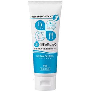 ■商品概要メーカー:大木製薬商品名:スキナガード(60g)区分:医薬部外品内容量:60g商品概要:【医薬部外品】仕事前に塗って手荒れの原因をバリアJANコード:4987030130555商品コード:071202977■商品の特徴●指先・手を酷使している方のための皮膚保護クリームです。お仕事の前に塗ると、水・湯・洗剤・消毒液や、油・インクなどの汚れや臭い、乾燥から指先・手を守ります。●保湿成分や水分を閉じ込めて潤いを保ち、さらさら・しっとり、肌荒れを防ぎます。約3~4時間の持続効果があります。●12種類の保湿成分配合濃グリセリン、ジプロピレングリコール、ヒアルロン酸Na(2)、プラセンタエキス(1)、ダイズエキス、オウゴンエキス、ユキノシタエキス、プルーンエキス、シャクヤクエキス、ワレモコウエキス、酵母エキス(4)、豆乳発酵液■効能・効果皮膚を保護する。ひび、あかぎれ、しもやけを防ぐ。■用法・用量適量を手にとりなじませてください。使用量の目安は小豆1粒分です。■有効成分グルチルレチン酸ステアリル、酢酸トコフェロール■原材料/成分/素材/材質アミノエチルアミノプロピルメチルシロキサン・ジメチルシロキサン共重合体、パールオロポリエテール、PVP、PCAイソステアリン酸POEグリセリル、濃グリセリン、DPG,ミリスチン酸イソプロピル、ステアリン酸、ミリスチン酸、セタノール、ベヘニルアルコール、モノミリスチン酸デカグリセリル、POEトリデシルエーテル酢酸Na、TEA、フェノキシエタノール■賞味期限/使用期限(製造から)3年■使用方法/召し上がり方仕事の前に1日2回ぬるを標準に、ハードな仕事や手荒れが起きているときは3~6回ぬるとより効果的です。■使用上の注意●傷、はれもの、湿疹等のある場合は、使用しないでください。●使用中や使用後に刺激等の異常が現れた場合は使用を中止し、皮膚科専門医にご相談ください。●目に入った時は直ちに洗い流してください。●乳幼児の手の届かない所に保管してください。●極端に高温又は低温の場所、直射日光の当たる場所に保管しないでください。■メーカー希望小売価格(税込)オープン価格■発売元/製造元/輸入元大木製薬■お問い合わせ先大木製薬株式会社03-3256-5051受付時間 9:00~17:00(土、日、祝日を除く)