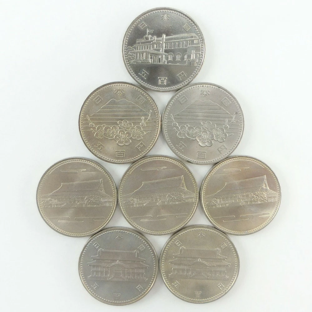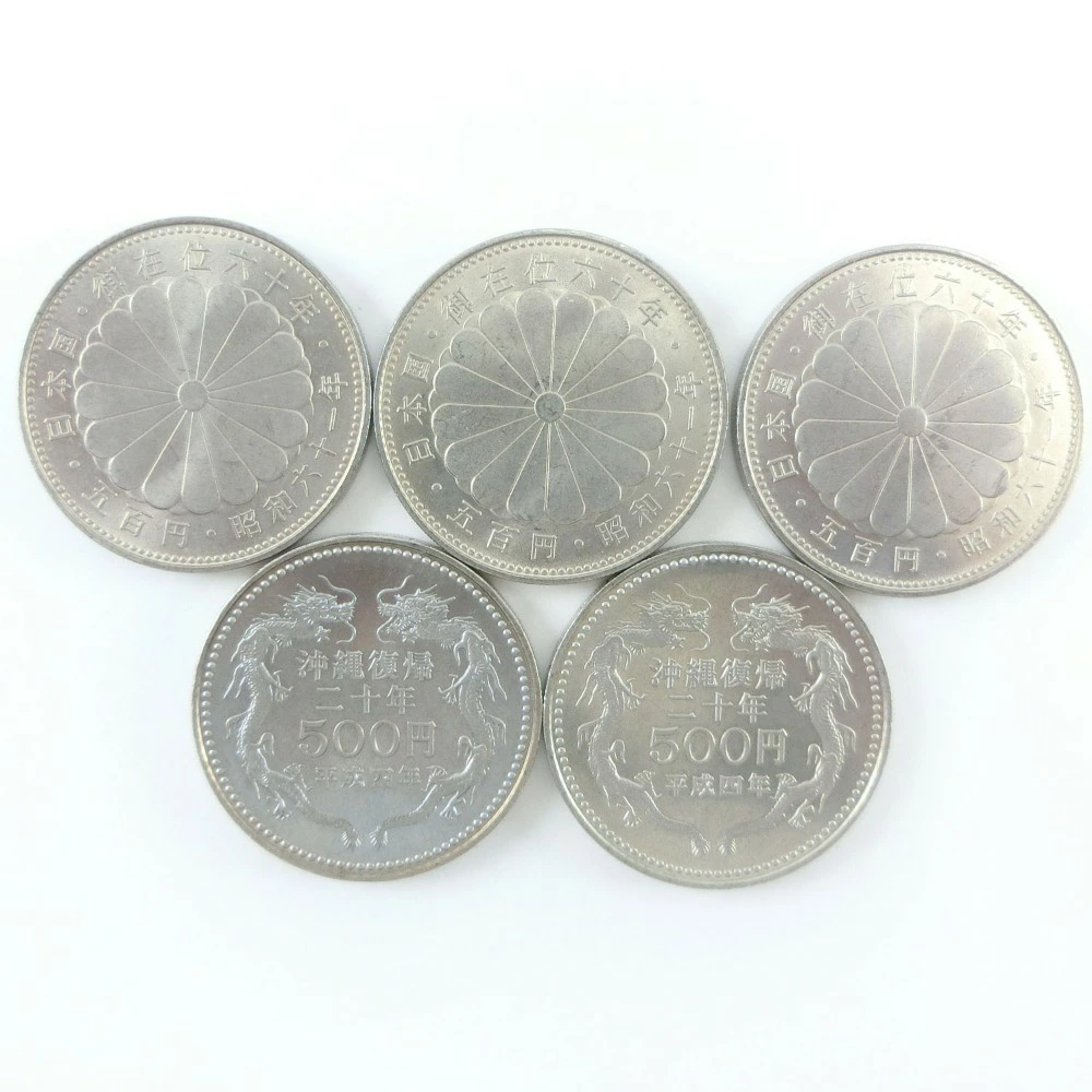 | 商品説明 | EXPO'85つくば万博 1985年(昭和60年)発行 500円硬貨×2枚 内閣制度百年 1985年(昭和60年)発行 500円硬貨×1枚 御在位六十年 1986年(昭和61年)発行 500円硬貨×3枚 沖縄復帰二十年 1992年(平成4年)発行 500円硬貨 ×2枚 ・量目・サイズ:13g・直径30mm ・素材の品位:銅750/ニッケル250 【状態】 ・未使用品。 コレクションされていたもので良い状態ですが、中には保管時のわずかな小キズやスレ、変色がある場合がございます。 ご理解の上、ご購入ください。 ※こちらのお品物は、代金引換のお支払い方法はご使用できません。 ポスト投函ですので、配達希望日時のご指定も出来かねます。 (追跡番号あり、保証なし) ご了承下さいませ。 |