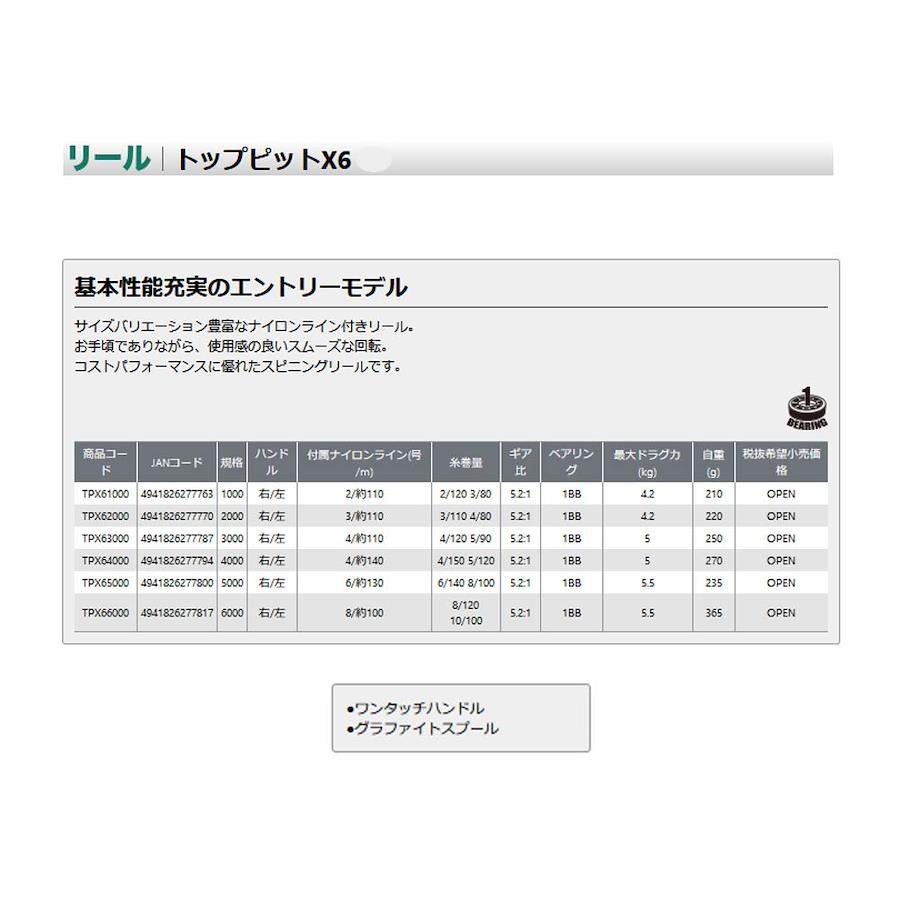ハンドル:右/左付属ナイロンライン:2号/約110m糸巻量:2号/120m糸巻量:3号/80mギア比:5.2:1ベアリング数:1BB最大ドラグ力:4.2kg自重:210gスプール素材:グラファイトスプール