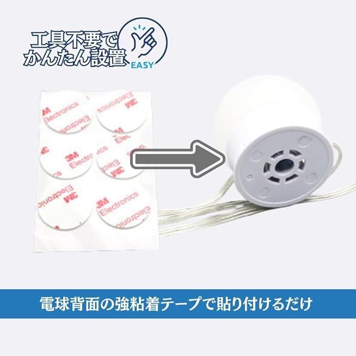 「カンタン設置」電球背面の強粘着テープで、特別な工具不要で簡単に貼り付け可能です。
