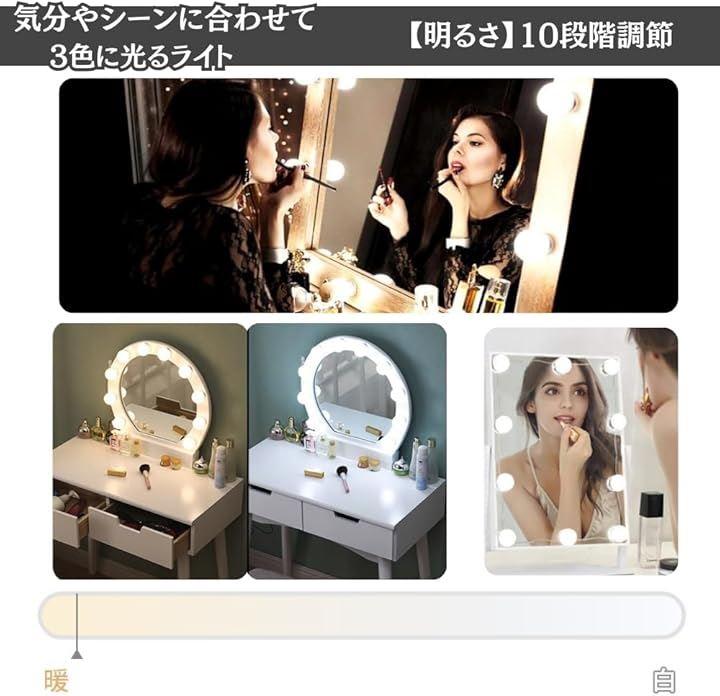「ダイナミックな照明」10個の電球がお部屋を十分に照らし出し、メイクアップや読書、細かな作業にも最適な光を提供します。