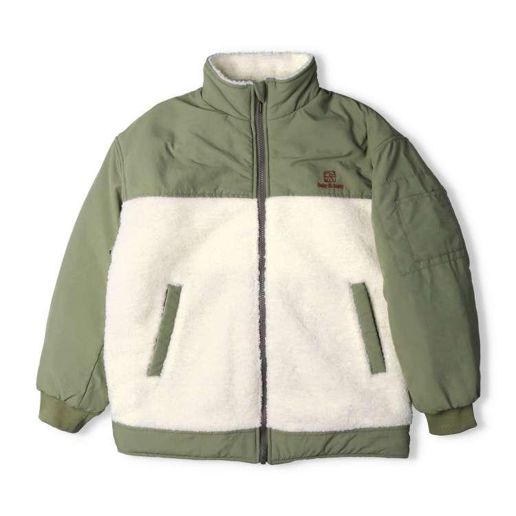 リップストップとボアの切替デザインのジャケット、アウター。アウトドアな生地感とボアの切替がかっこいい!中綿入りで防寒面もばっちりです。同じデザインのベビー、トドラーサイズはV52108になります。【アイテム】無地 シンプル カジュアル お洒落 オシャレ かっこいい かわいい 可愛い 普段着 デイリーウェア お出かけ着 ロングスリーブ 長袖 アウター ブルゾン ジャンパー コート ジップアップ フロントジップ 子ども こども 男児 男の子 ボーイズ キッズ スクールサイズ ジュニアサイズ 小学校 中学生 中学校 通園 通学 小学生 2024年秋冬物新作 丸高衣料 ブラック 黒色 カーキグリーン 深緑色 ダディオダディ