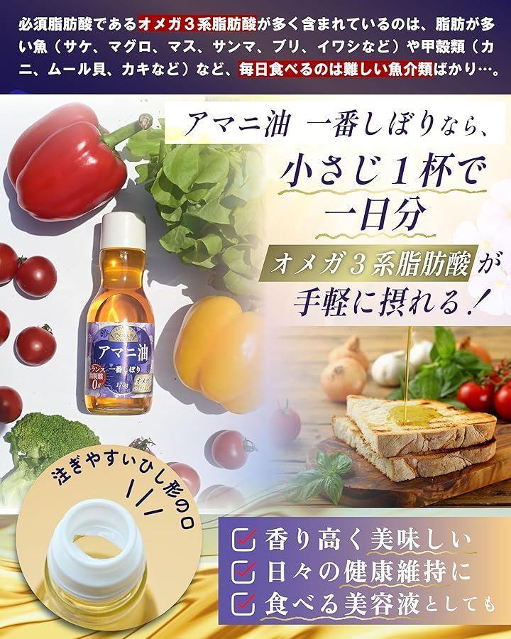 サラダ、グラノーラ、豆腐、納豆、ヨーグルトなど様々な料理にかけて手軽に必須脂肪酸を摂取できます。