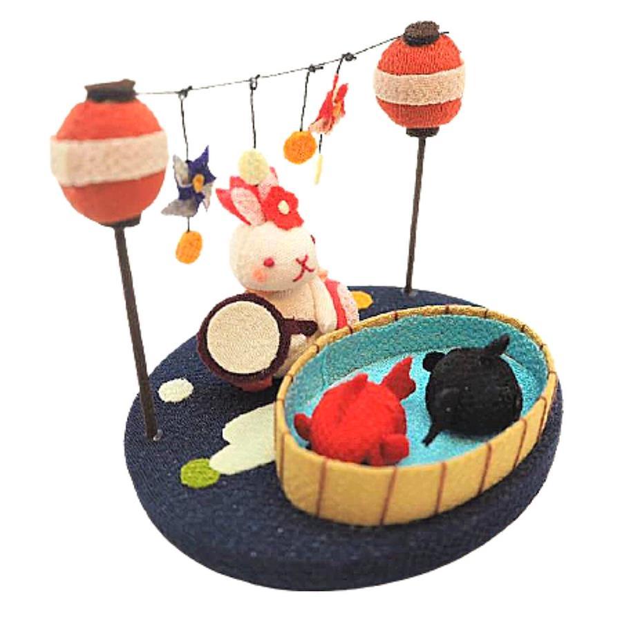 #夏祭り#夏#うさぎ#夏休み#かわいい#ちりめん#縮緬#季節#季節の商品#贈り物#飾り物#きれのはな #うさぎ#置物#飾り#玄関 #可愛い#ミニチュア #コンパクト #金魚 #風車 #提灯#金魚すくい #桶 #出目金