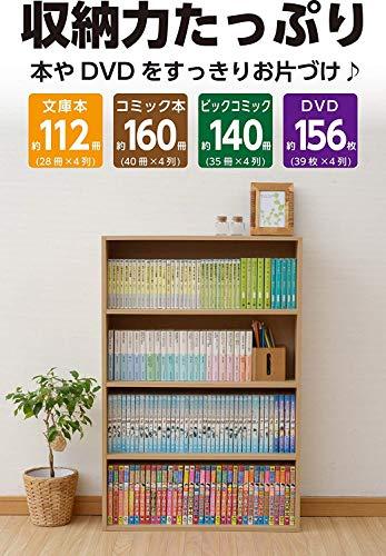 お客様組立品本体サイズ:幅60×奥行17×高さ89cm材質:プリント紙化粧繊維板原産国:インドネシアコミック収納目安:160冊DVD収納目安:144枚オープン部内寸:幅56×奥行15×高さ20cm