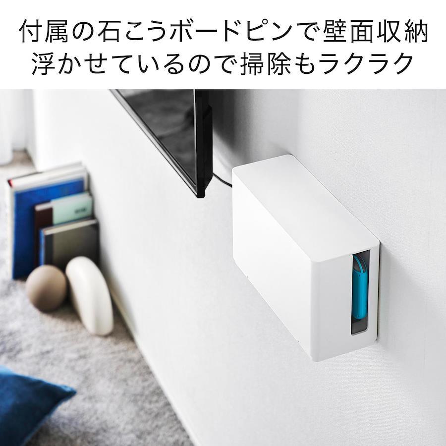 【蓋付き重ねられるゲーム機器収納ケース】ゲーム機やコントローラーなどを省スペースに一括収納できる、蓋付き重ねられる収納ケースです。置き場所に困る小型ゲーム機を充電しながら収納可能!仕切り付きなのでゲーム機本体やコントローラー、周辺機器を整理しやすく便利です。壁の穴が目立ちにくい石こうボードピンで簡単に壁へ取り付けでき、浮かせて収納できるので掃除もラクラク。蓋付きなのでほこりも防げます。蓋を外せば2個までスタッキング可能で、省スペースにすっきり収納できます。