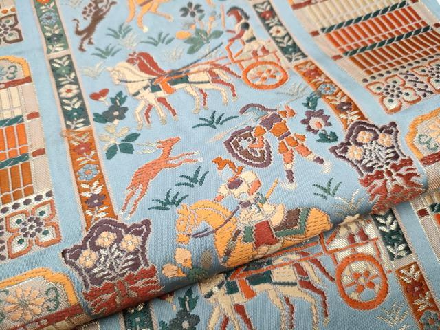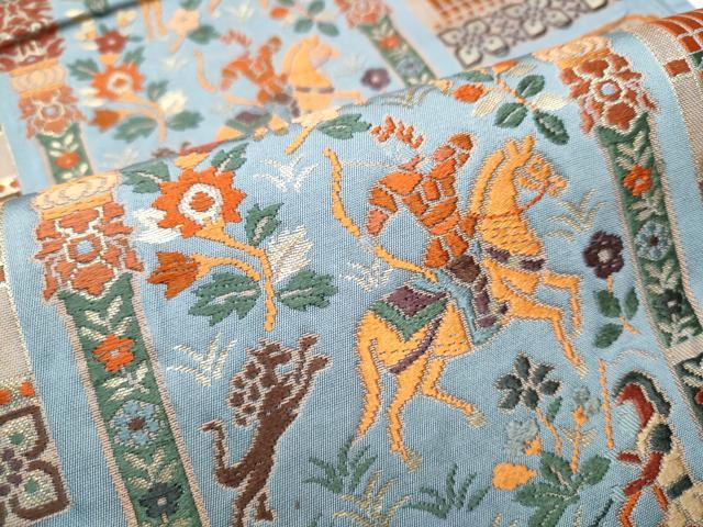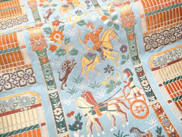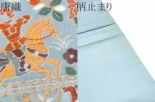 柄止まりに変色、唐織部分に糸よれ・糸飛び出しがございますが