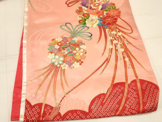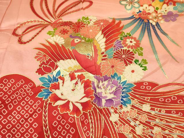 Heiwaya Kimono for Shrine Visits, Girls, Celebration Kimono, Baby Kimono, First Kimono, Noshimen, Koma Embroidery, Phoenix Flower Design, Kusudama (Japanese Ball) Design, Gold Accents, Excellent Quality, DAAS9108ma