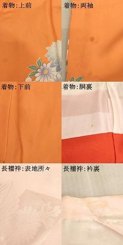 着物【正絹】の状態は接写画像のように上前・両袖・下前・胴裏に汚れがございますが