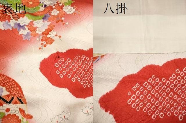 着物【正絹】の状態は接写画像のように表地所々・八掛に薄い汚れがございます。