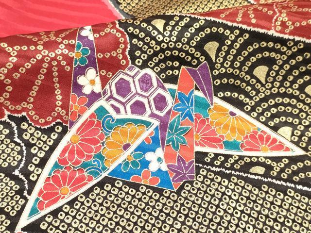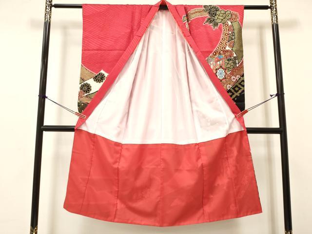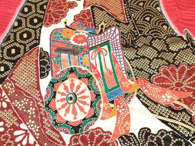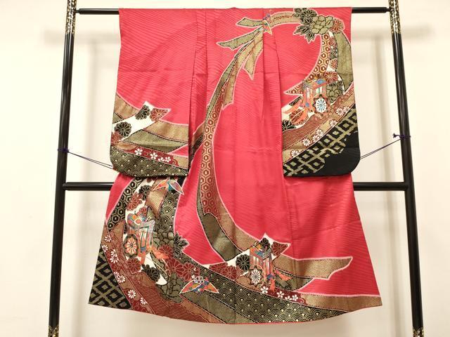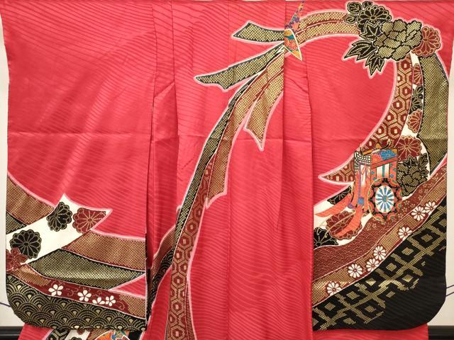 Heiwaya Kimono for Shichi-Go-San, Girl, Age 7, Celebration Kimono, Yotsumi, Origami Crane, Noshi, Imperial Carriage, Flower Design, Gold Accents, Excellent Item, DAAY3245ma