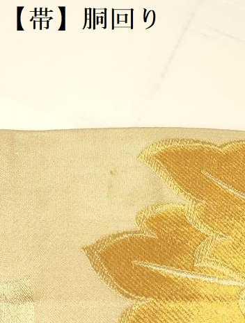 袋帯【正絹・芯なし】の状態は接写画像のように胴回りに薄い汚れがございますが