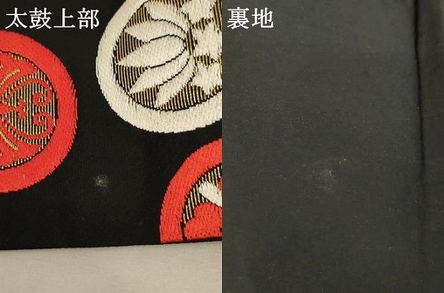 袋帯【正絹・芯なし】の状態は接写画像のように太鼓上部・裏地に汚れがございますが
