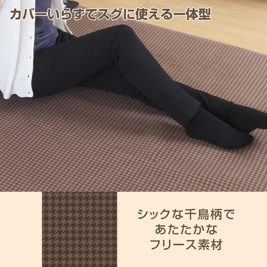 3営業日以内に発送≪新品未開封品≫:【カバーいらずな一体型】通常、ホットカーペットには専用のカバーをかけて使用する必要がありますが、このホットカーペットはカバーいらずでそのまま使うことができます。【ふかふかで座り心地が良い】カーペット本体表面は、あたたかなフリース素材を採用しております。柄もシックな千鳥柄なのでお部屋のインテリアとも合わせやすいです。【スライド調節】温度調節にスライドバーを使っているため、細かい温度調節が可能です。例えば「弱」と「中」の間に設定したり、「中」と「強」の間に設定することができるので、お好みの温度にカスタマイズできます。【ダニクリーン機能】設定温度を「強」にして約40分ほど通電させることで、カーペット表面にダニが逃げてきます。それを、よく掃除機で吸い取ることで逃げてきたダニを除去できます。【高い安全性】この製品は自社検査のPSEマーク認証だけではなく、更に厳しい基準のSマーク認証を取得しています。Sマーク付電気製品は、第三者認証機関によって製品試験及び工場の品質管理の調査が行われている証です。 商品の仕様