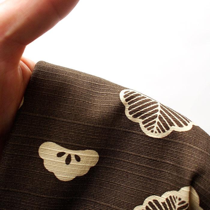 松はとても「日本的」な樹木で様々な紋様があります。松の緑は「常磐色」であることから「常盤木」と呼ばれ、また千年の命を保つとして「神の宿る木」吉祥樹とされました。その姿から「威厳」「長寿」「子孫繁栄」の意味を持ち、一年を通して吉祥柄として使われています。図案化された松の模様が繰り返しますが、よく見るとシルエットが少しずつ違う事で単調にならず威厳の松もどこか可愛らしい印象を持ちます。シンプルにデザイン化される事で、和模様ながら使う場所を選びません。高貴な【紫】とモダンな【焦茶】をご用意しました。生地はサラッと優しい触り心地、ヨコ糸の太さに変化を持たせる事で味のある太細な横縞が入る特徴を持つ表情豊かなシャンタン生地です。【カバーサイズ】 横50㎝×縦50㎝【生地素材】 綿(シャンタン)100%この商品はカバー(ファスナー加工)のみです。中わたは別途ご購入ください。またカートの購入可能数より多い数をご希望の場合はご相談ください。
