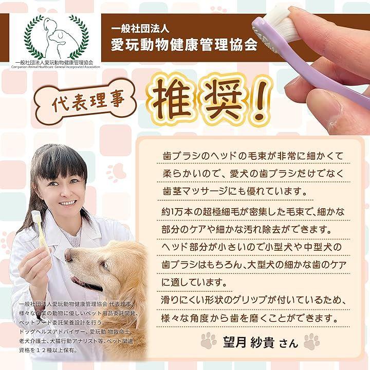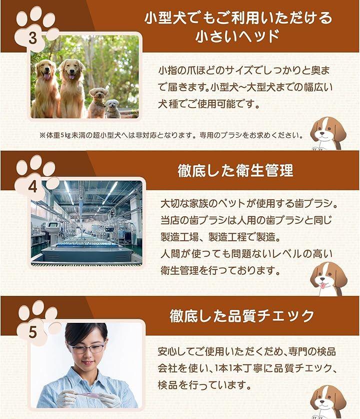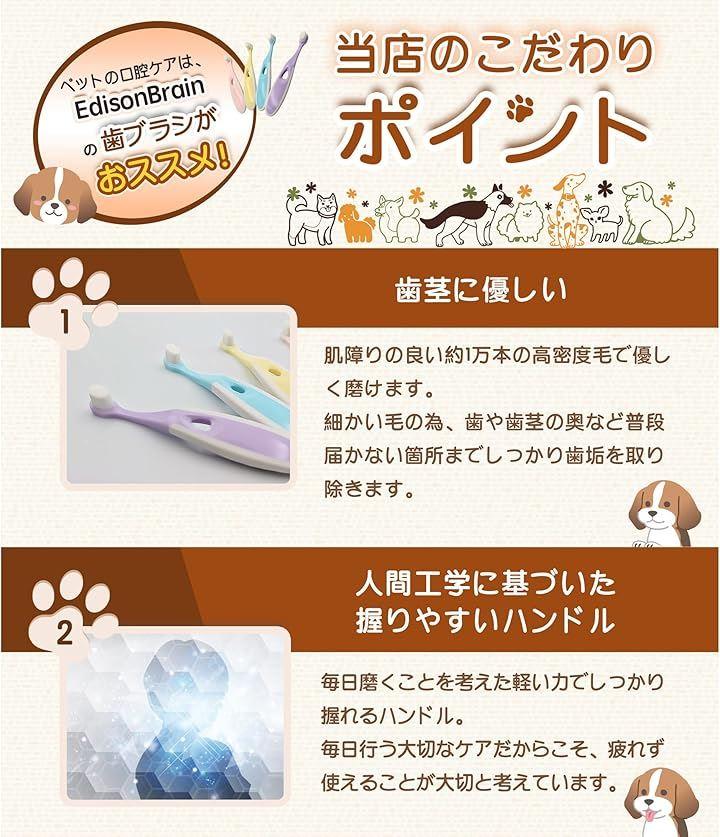また、人用歯ブラシと同等の品質管理を行っており、非毒性素材の使用など、ペットと飼い主の安全性にも配慮しております。