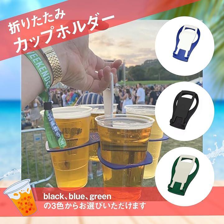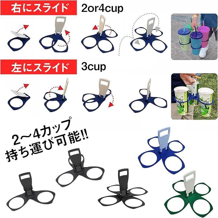 「片手で運べるドリンクホルダー」「商品内容」: 折りたたみ式カップホルダー「カラー」: ブルー,グリーン,ブラック「サイズ」:(折りたたみ)14x8.5x1.6cm(展開)25x25x13.5cm(穴直径)7.6cm「素材」: PA66樹脂