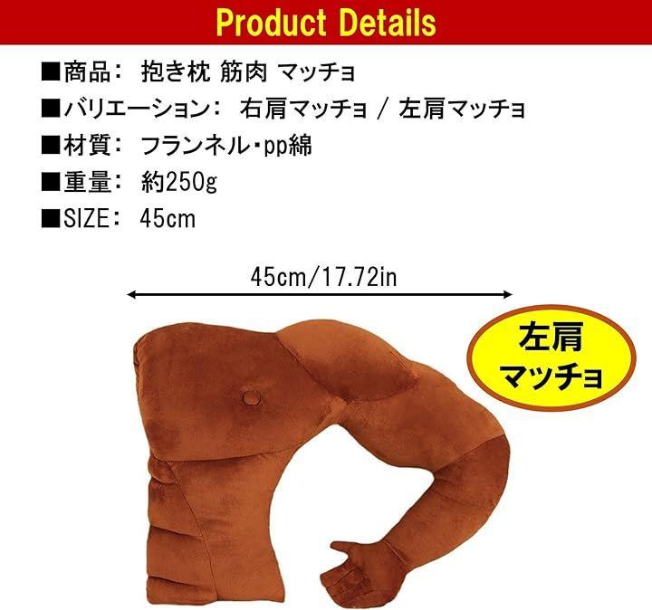 「商品詳細」 抱き枕 筋肉 マッチョ *バリエーション: 右肩マッチョ/左肩マッチョ *材質: フランネル・pp綿 *重量: 約250g *サイズ: 45cm /17.72in