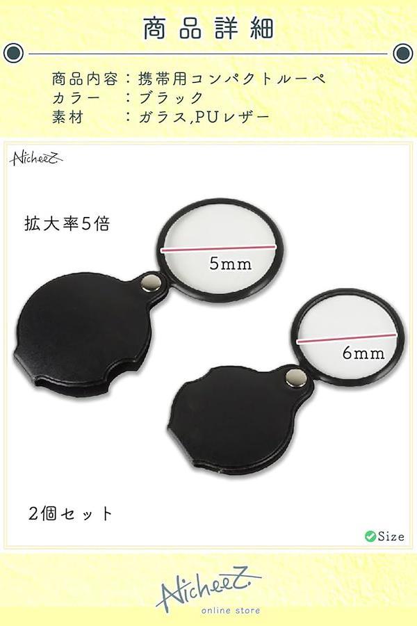 「商品内容」拡大鏡(拡大率5倍) セット数:2枚(5mm)(6mm) 素材:ガラス,PUレザー カラー:ブラック
