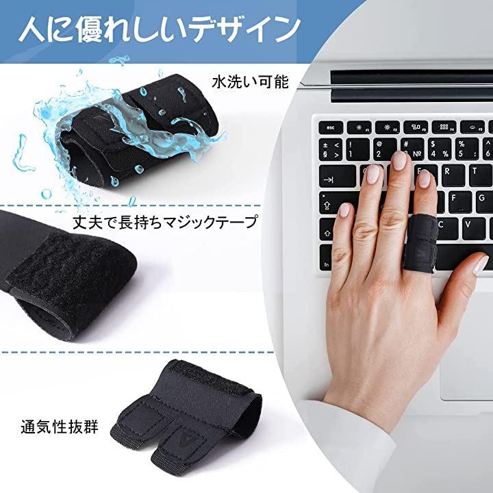 ・「しっかりサポート」:フィンガーサポーターのテープは2股で、指にしっかりフィットします。