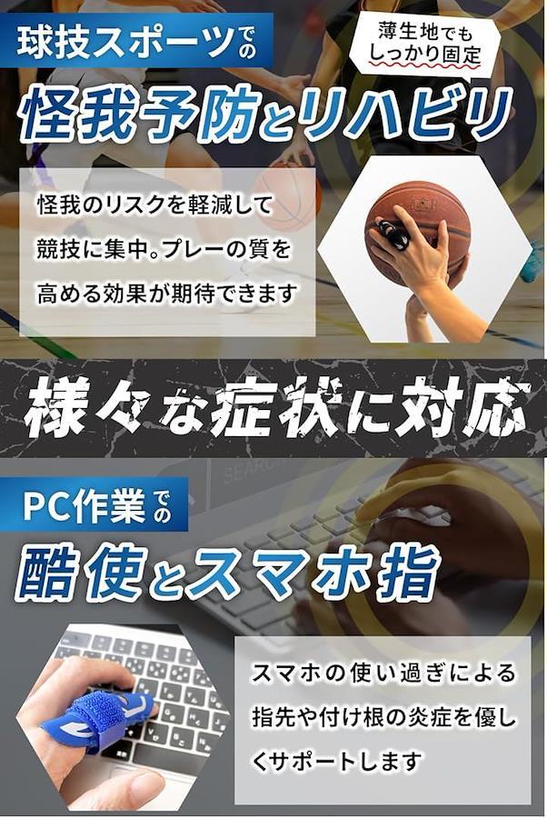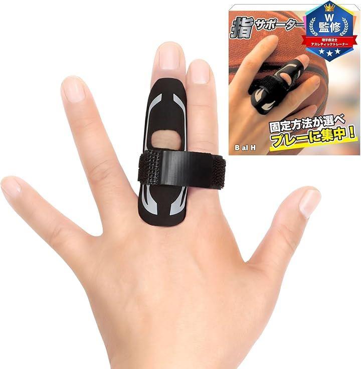指を入れてベルトを巻きテープで固定するだけでテーピングよりも手軽に装着できる指サポーター
