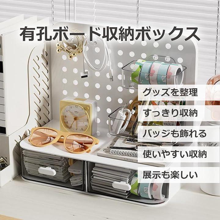 卓上収納ボードは有孔ボード設計で、アイテムの配置を自由にカスタマイズできます。