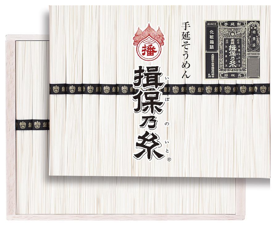 手延そうめん「揖保乃糸」は、厳選した小麦と赤穂の塩を原料に、そうめん作りに適した豊かな気候風土に育まれてきました。およそ600年受け継がれる伝統の手延製法で、幾度も熟成を重ねながら、職人が丹精込めて作り上げた播州地方の名品です。