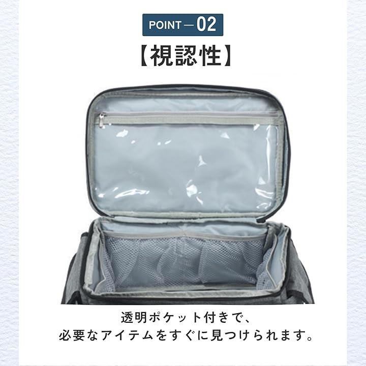 「視認性」透明ポケット付きで、必要なアイテムをすぐに見つけられます。
