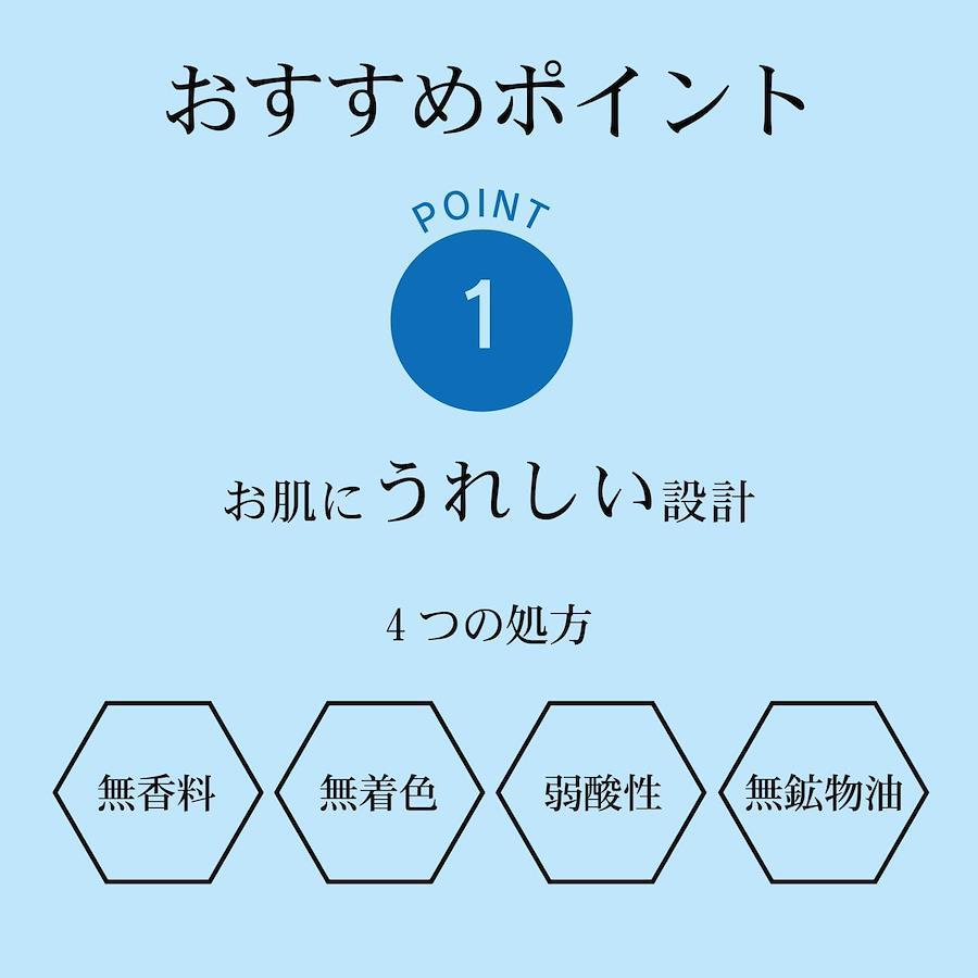 【使用上の注意】・本品は食品ではありませんので飲めません。・お肌に異常が生じていないかよく注意して使用してください。化粧品がお肌に合わないとき、即ち次のような場合には、使用を中止してください。そのまま化粧品類の使用を続けますと、症状を悪化させることがありますので、皮膚科専門医等に相談されることをおすすめします。(1)使用中、赤味・はれ・かゆみ・刺激・色抜け(白斑等)や黒すみ等の異常があらわれた場合。(2)使用したお肌に直射日光があたって上記のような異常があらわれた場合。・傷・はれもの・しっしん等異常のある部位には、お使いにならないでください。・目に入ったときは、直ちに洗い流してください。・乳幼児の手の届かないところに保管してください。・極端に高温または低温の場所や、直射日光のあたる場所には保管しないでください。・ポンプはゆっくりと押してください。強く押すと内容物が勢いよく出て、飛び散る可能性があります。