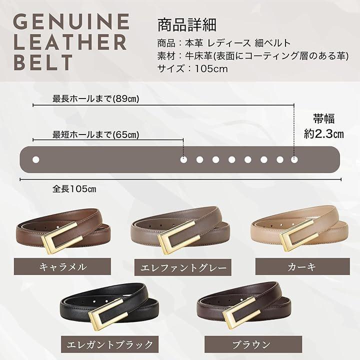 シンプルで洗練されたデザインと機能性を兼ね備えたレディース本革ベルト。