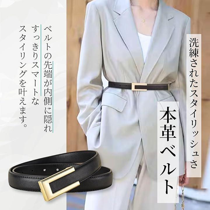 シンプルで洗練されたデザインと機能性を兼ね備えたレディース本革ベルト。
