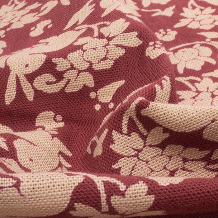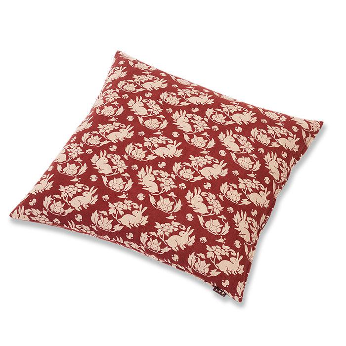 古来より愛されてきた兎柄は多くの意味を持ちます。ぴょんぴょん跳ねる姿から「跳躍・飛躍」、長い耳は「福を集める」、子だくさんから「子孫繁栄」、月にその姿を見て「ツキを呼ぶ」など兎柄にたくさんの願いを込め吉祥紋様となりました。おぼろに霞む濃淡があることから名付けられた【おぼろ染】は自然なムラ感が柔らかな風合いを醸し出します。可愛い【野兎】、こっそり入った【宝尽くし】をお楽しみ下さい。古典の和柄ですがふんわり優しい雰囲気が和ませてくれます。穏やかな【えんじ】と優しい【ブルー】の2色をご用意しました。ざっくりとした織目で柔らかく手になじみの良い変わり織りです。【カバーサイズ】 横45㎝×縦45㎝【生地素材】 綿(変わり織り)100%この商品はカバー(ファスナー加工)のみです。中わたは別途ご購入ください。またカートの購入可能数より多い数をご希望の場合はご相談ください。