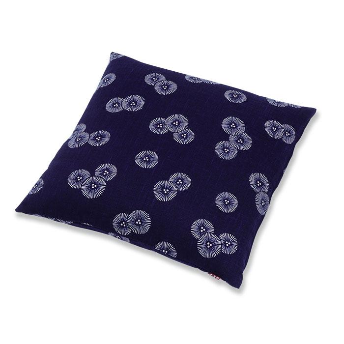 日本には松を使った柄が数多くあります。松は「神の宿る木」と信じられ神聖な吉祥樹で、風雪に耐え1年通して緑の葉を保ち寿命が長いことから「威厳」「長寿」や「子孫繁栄」の意味を持ちます。【傘松】は和傘を開いたところを松に見立てて創られた紋様です。おぼろに霞む濃淡がある事から名付けられた【おぼろ染】に、丸いフォルムが渋可愛い【傘松】を散らしました。古典柄ですが、自然なムラ感が柔らかな風合いでひっそりと静かに存在感を醸し出します。控えめな【グリーン】【赤茶】【紺】の3色をご用意しました。ざっくりとした織目で柔らかく手になじみの良い変わり織りです。【カバーサイズ】 横55㎝×縦59㎝【生地素材】 綿(変わり織り)100%この商品はカバー(ファスナー加工)のみです。中わたは別途ご購入ください。またカートの購入可能数より多い数をご希望の場合はご相談ください。