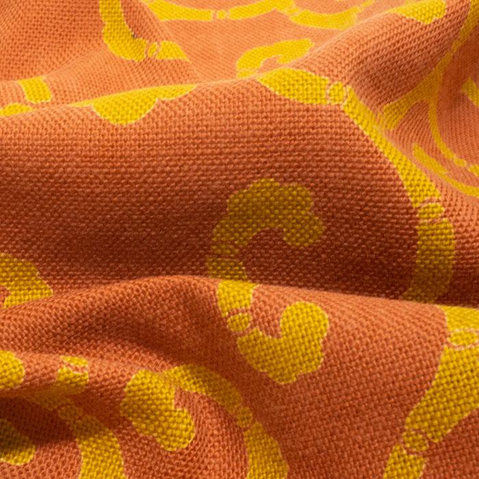 菱形に4枚の花びらを描いた【花菱】は、平安時代には有職紋様として位の高い人しか使えなかった事から「高貴な紋様」とされました。また【唐草】は植物の葉や茎が絡み合って広がり、その生命力に溢れ途切れる事なく蔓をのばしていく姿から「繁栄・長寿」を象徴する吉祥紋様とされ好んで使われました。おぼろに霞む濃淡がある事から名付けられた【おぼろ染】に少し大胆な【花菱唐草】をあしらいました。自然なムラ感が柔らかな【おぼろ染】に施した【花菱唐草】がオリエンタルな雰囲気を醸し出します。柔和な【あかね色】をご用意しました。ざっくりとした織目で柔らかく手になじみの良い変わり織りです。【カバーサイズ】 横55㎝×縦55㎝【生地素材】 綿(変わり織り)100%この商品はカバー(ファスナー加工)のみです。中わたは別途ご購入ください。またカートの購入可能数より多い数をご希望の場合はご相談ください。