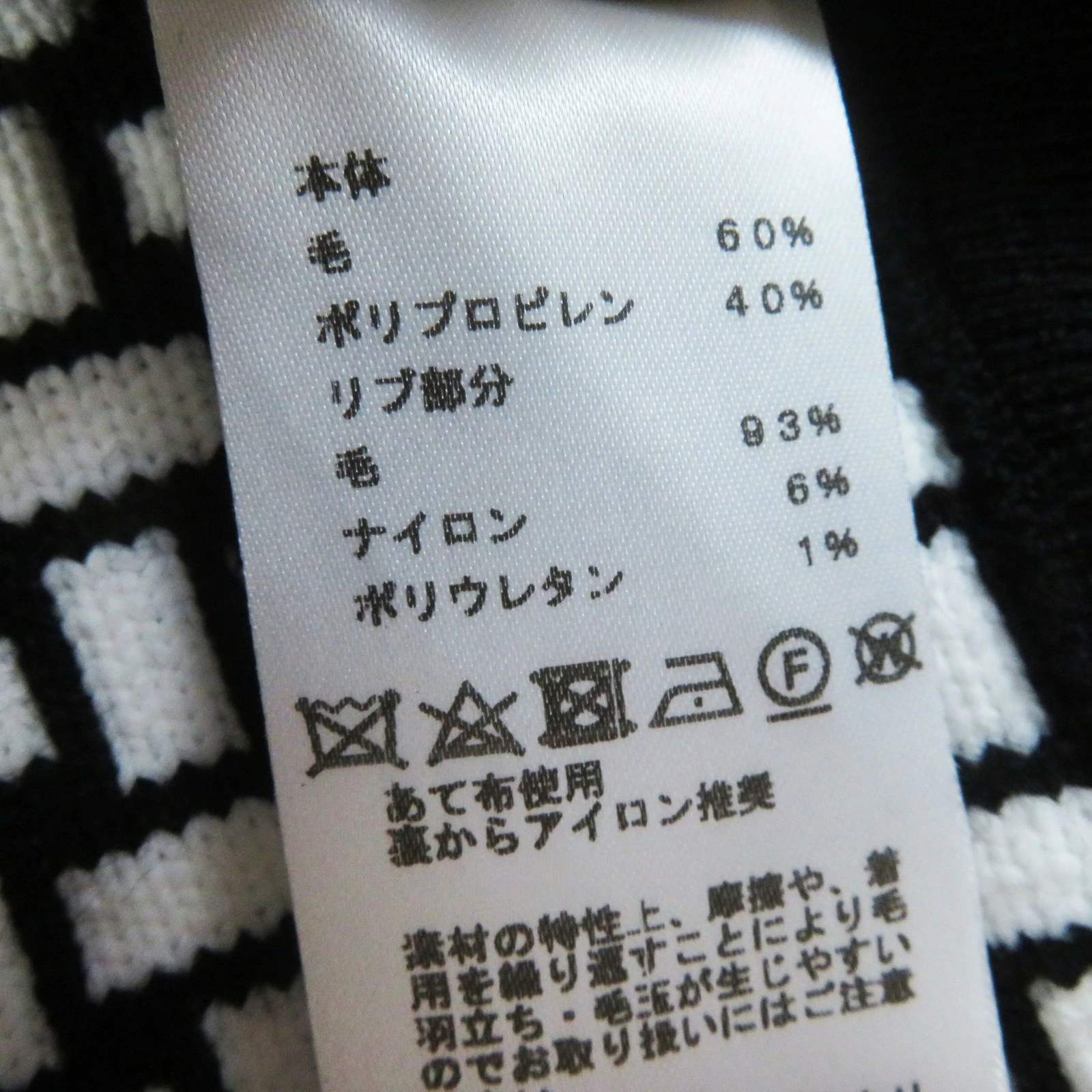 | 素材 (material) | 本体:ウール60% :ポリプロピレン40% 一部:ウール93% :ナイロン6% :ポリウレタン1% | ||||||||||||||||