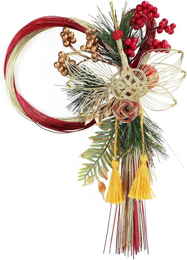 [ 生花さながらの華やかさ ] 和飾 り、天然素材をバランスよく華やかにまとめた「お正月しめ飾り」。