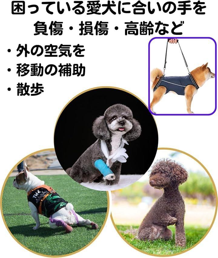 歩行補助と介護: 階段の上り下りや車の乗り降りをサポートし、前後の脚を支援して快復中のペットに最適です。