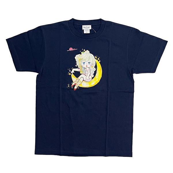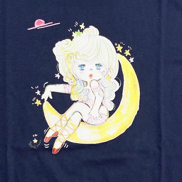 女の子が月に乗っているデザインが可愛い水森亜土のTシャツです。綿100%でさらりと着られます。シンプルかつおしゃれなデザインなので普段使いにぴったりです☆彡【サイズ】身丈:70cm×身幅:52cm