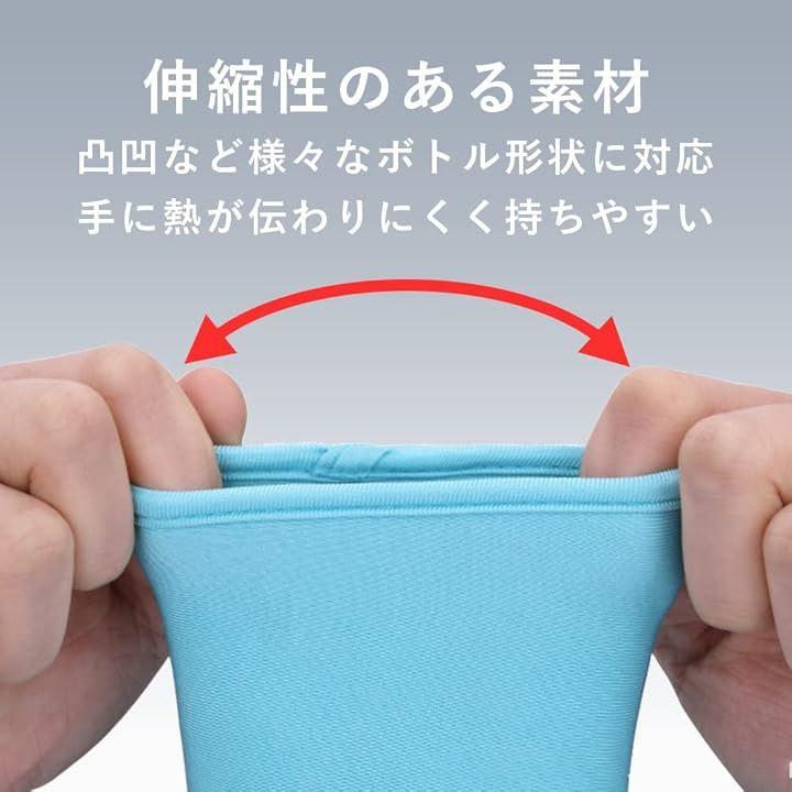 「伸縮性のある素材」伸び縮みするため様々な形状のボトルにお使い頂けます。