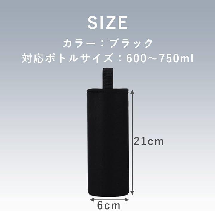「商品詳細」本体1個、サイズ:縦21cm,直径6cm~7.5cm、対応容量:600ml~750ml、カラー:ブラック