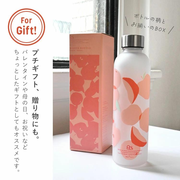 【ウォーターボトル】さまざまなシーンで使えるWpc.のウォーターボトル。マットな半透明ボトルに可愛い絵柄とロゴのプリントがおしゃれ♪内容量がひと目でわかるメモリ付きなので、水分摂取の管理にも最適です。750mlの大容量でオフィスやジムなどにぴったり◎ボトルと同じ柄のBOX入りなのでプレゼントにもオススメです。